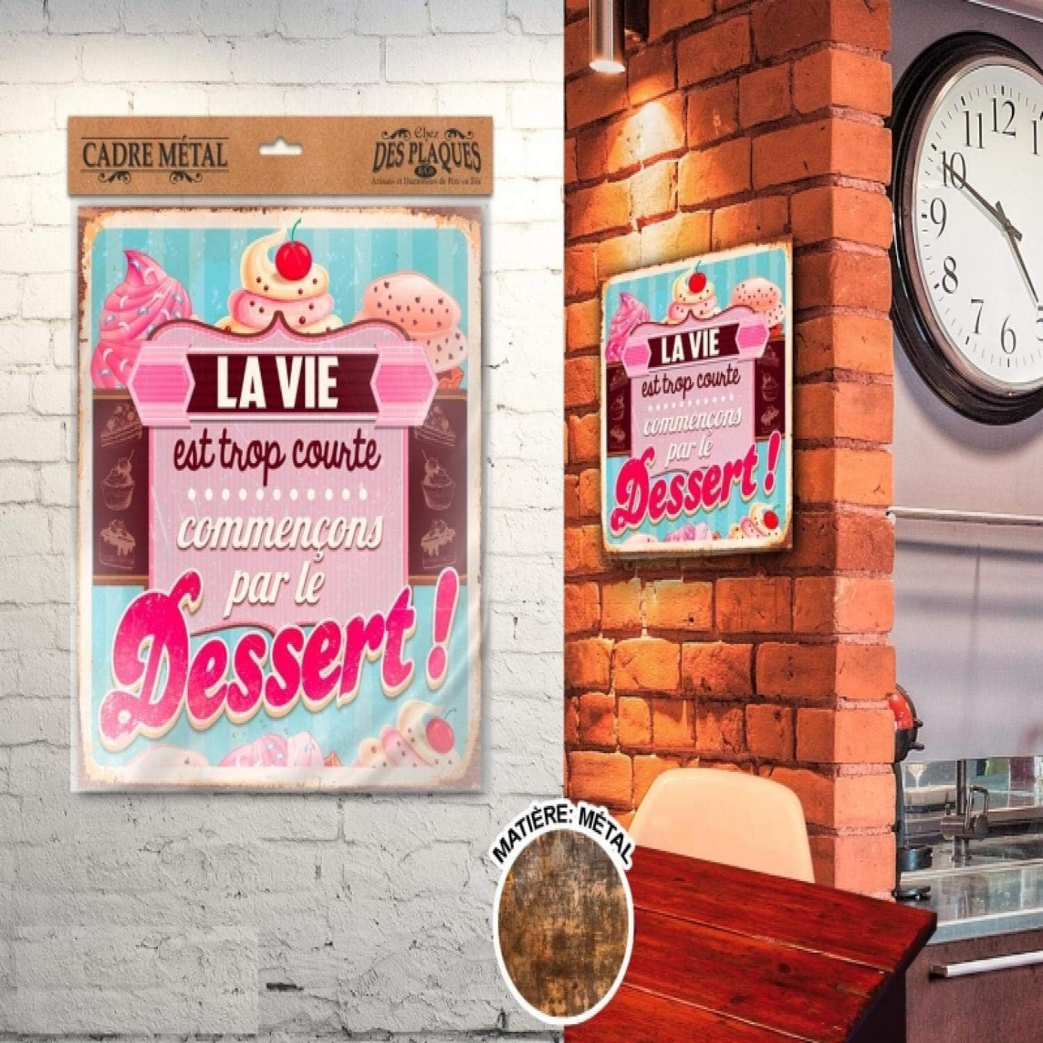Gratuit Plaque Decorative En Metal 30x30 Cm La Vie Est Trop Courte
