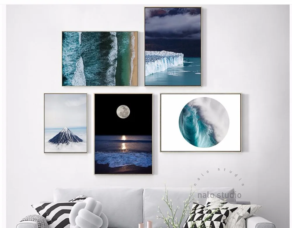 Téléchargement gratuit Nuit Lune Mer Vague Paysage Minimaliste Art Affiche Imprimer